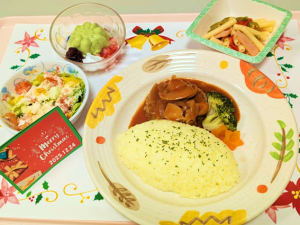 12月24日の昼食は「クリスマス」をテーマとしたメニューでした。